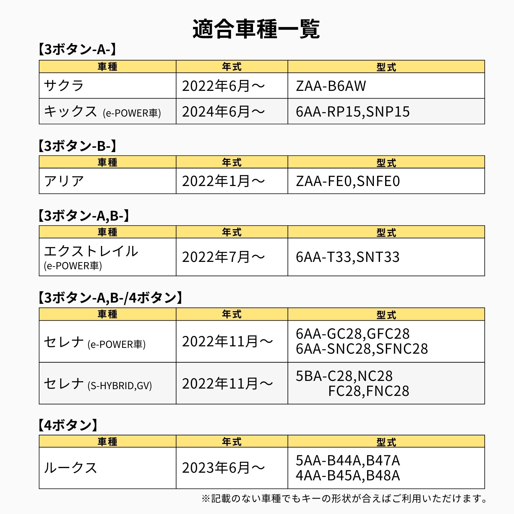 ※必ず適合キーの画像をご確認ください、年式やモデルによっては適合しない場合がございます。